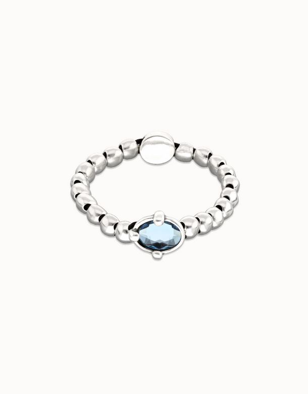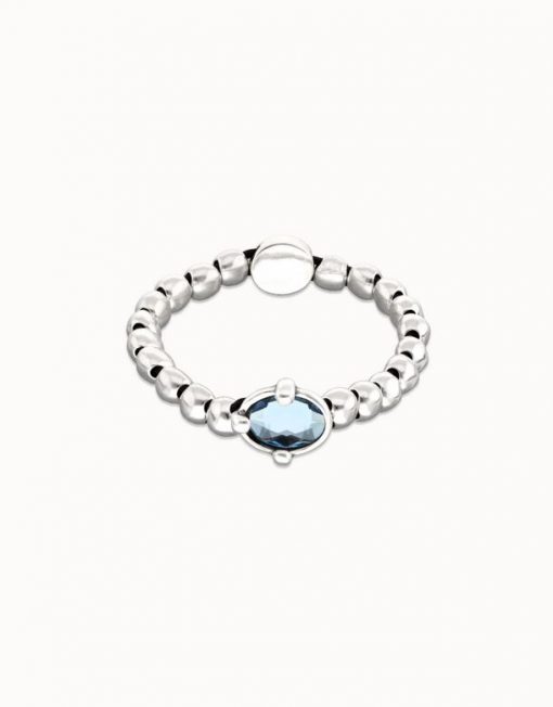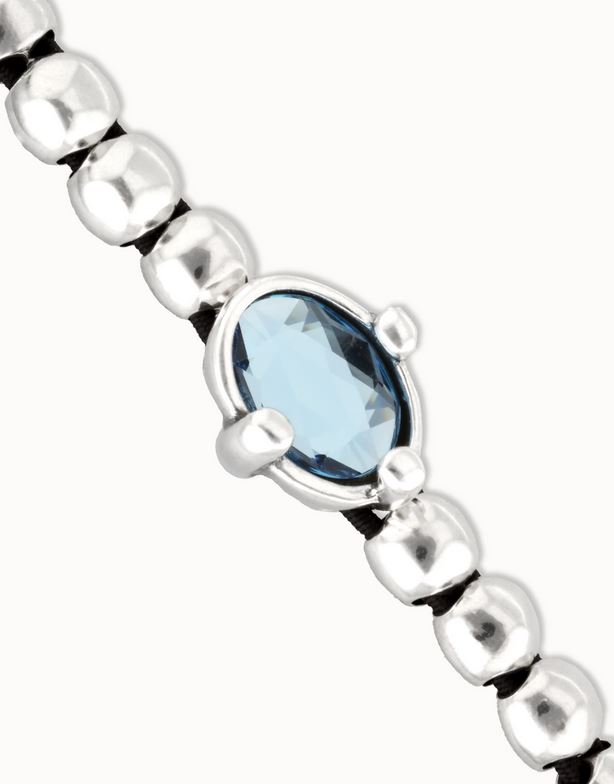 Esta joya de diseño presenta una cadena de pequeñas esferas de plata que aportan una textura sutil y un estilo adaptable, realzada por un luminoso cristal facetado en un sereno tono azul.