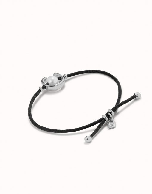 Pulsera de hilo de ratón negro con perla shell fornitura bañada en plata de ley. Elaborado en España, en un proceso 100% artesanal. Cuando se trata de pulseras, ¡más es más! para ti, que te encanta mezclar colores, ser atrevida y arriesgar con tus looks. esta coleción está hecha para ti y lo sabes.