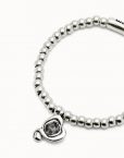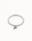 Expresa tu estilo más auténtico con esta pulsera elástica de cuentas bañada en plata, adornada con un delicado colgante en forma de corazón y cristal facetado.