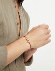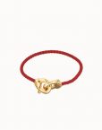 Pulsera de cuero trenzado rojo con cierre de mosquetones bañado en oro de 18K.
