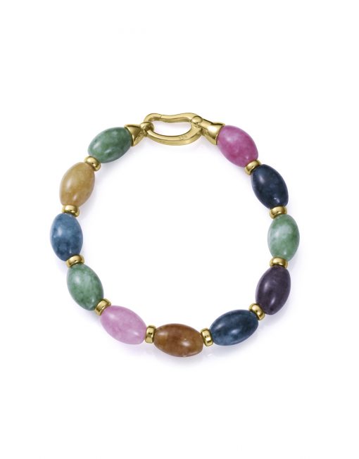 Una pulsera que exuda sofisticación y conexión con la naturaleza. Fabricada en plata de primera ley con un delicado baño de oro, se adorna con piedras naturales de jade, símbolo de equilibrio y serenidad. Su tono verde suave aporta frescura y armonía, mientras que el acabado dorado resalta la pieza con una calidez refinada. Con un largo de 19 cm, esta pulsera se ajusta cómodamente a la muñeca, convirtiéndola en un accesorio perfecto para cualquier ocasión, desde el día a día hasta eventos más especiales. Una joya que combina elegancia, serenidad y estilo.