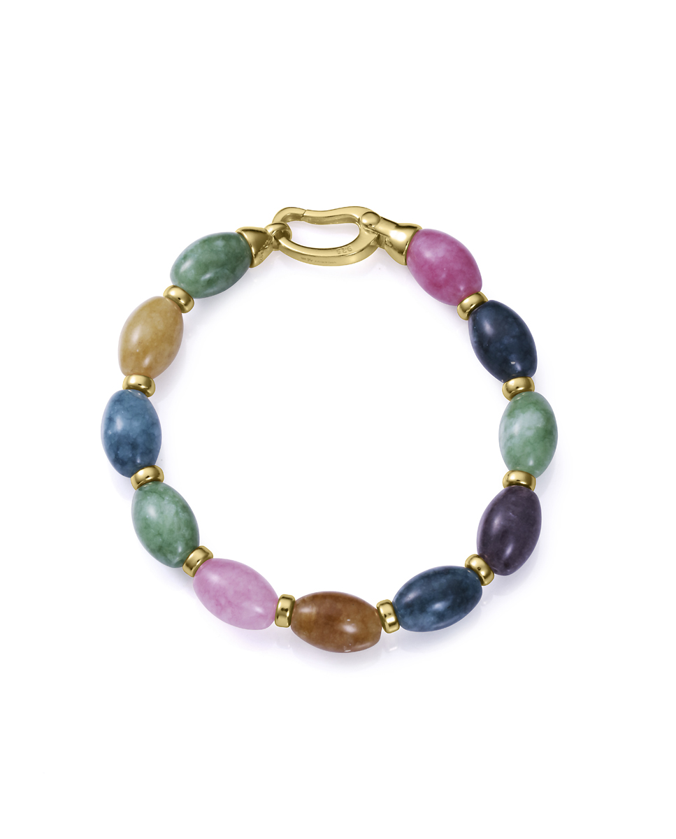 Una pulsera que exuda sofisticación y conexión con la naturaleza. Fabricada en plata de primera ley con un delicado baño de oro, se adorna con piedras naturales de jade, símbolo de equilibrio y serenidad. Su tono verde suave aporta frescura y armonía, mientras que el acabado dorado resalta la pieza con una calidez refinada. Con un largo de 19 cm, esta pulsera se ajusta cómodamente a la muñeca, convirtiéndola en un accesorio perfecto para cualquier ocasión, desde el día a día hasta eventos más especiales. Una joya que combina elegancia, serenidad y estilo.