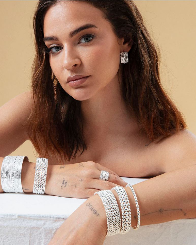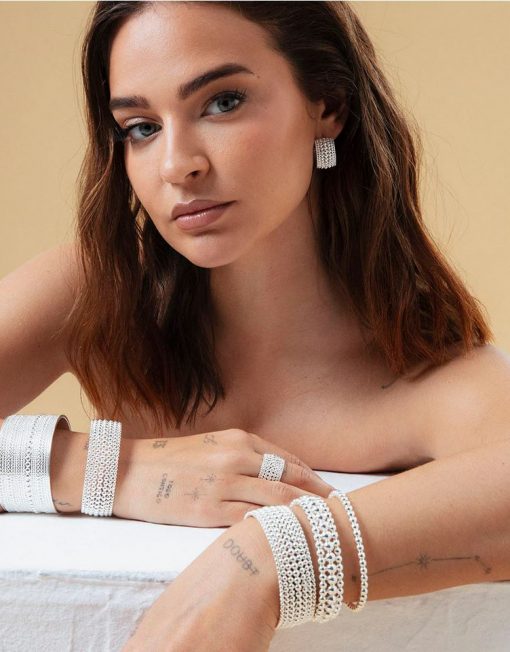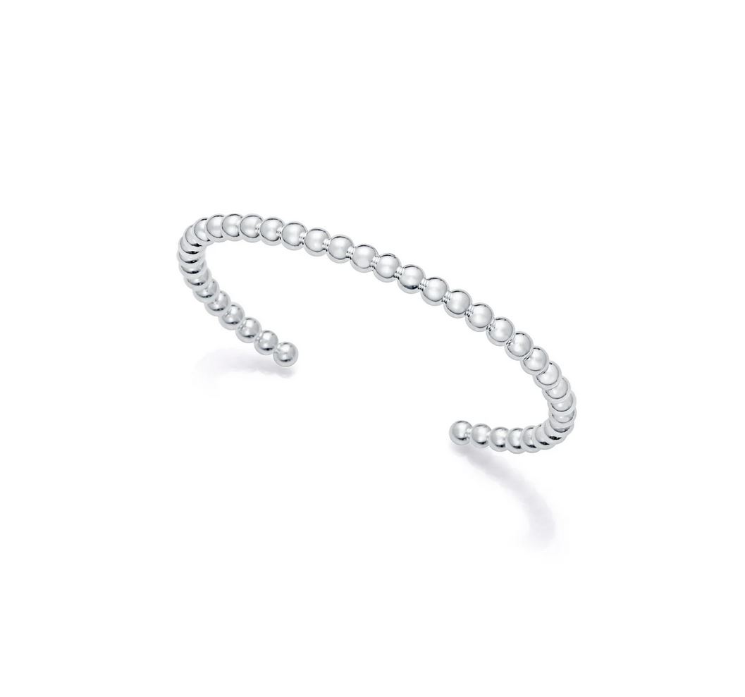 Pulsera de acero chapado en plata 999 exclusiva de la colección de Laura Escanes es una joya sofisticada que resalta por su diseño de bolas, ofreciendo una textura elegante y moderna. Con un diámetro máximo de 6 cm, se adapta perfectamente a tu muñeca, convirtiéndola en el accesorio ideal para cualquier ocasión.