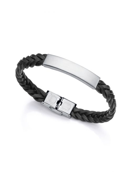 Pulsera de hombre Viceroy Air de acero satinado y cuero negro, largo 21,5cm.