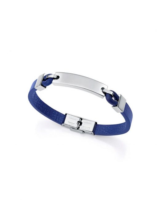 Pulsera de hombre en acero y piel azul, que combina la resistencia del acero con la suavidad y elegancia de la piel. Su diseño moderno y versátil es ideal para complementar cualquier look, ya sea casual o formal. La piel azul aporta un toque de frescura y estilo, mientras que el acero asegura durabilidad y carácter. Esta pulsera es perfecta para el hombre que busca un accesorio contemporáneo con un toque distintivo. Largo 21,5 cm.