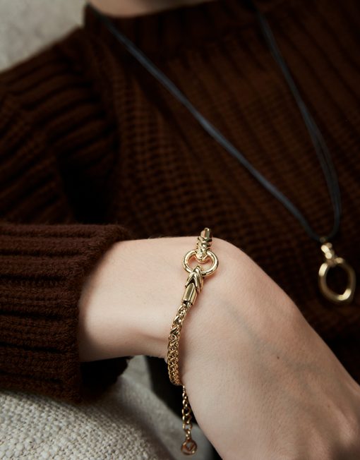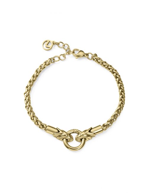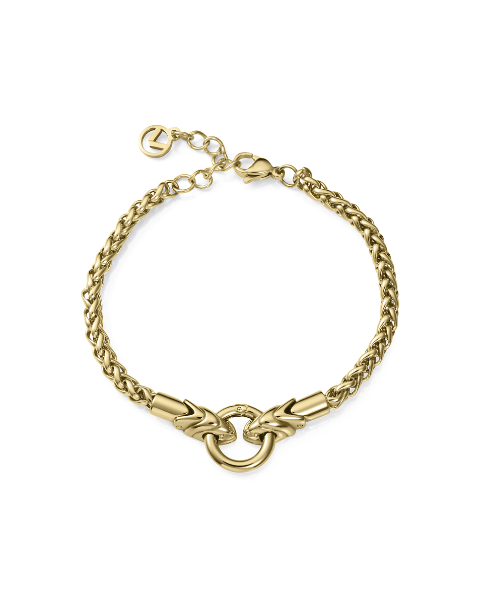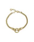 Una pulsera que exuda elegancia y modernidad en su diseño. Fabricada en acero con un acabado IP dorado, presenta una delicada cadena que aporta sofisticación y versatilidad. Con un largo de 17,5 cm más 2 cm de extensión, se ajusta cómodamente a la muñeca, convirtiéndola en una pieza ideal para realzar cualquier look con un toque de lujo sutil. Perfecta para mujeres que buscan una joya simple pero elegante, capaz de complementar tanto estilos cotidianos como más formales con un brillo dorado y atemporal.
