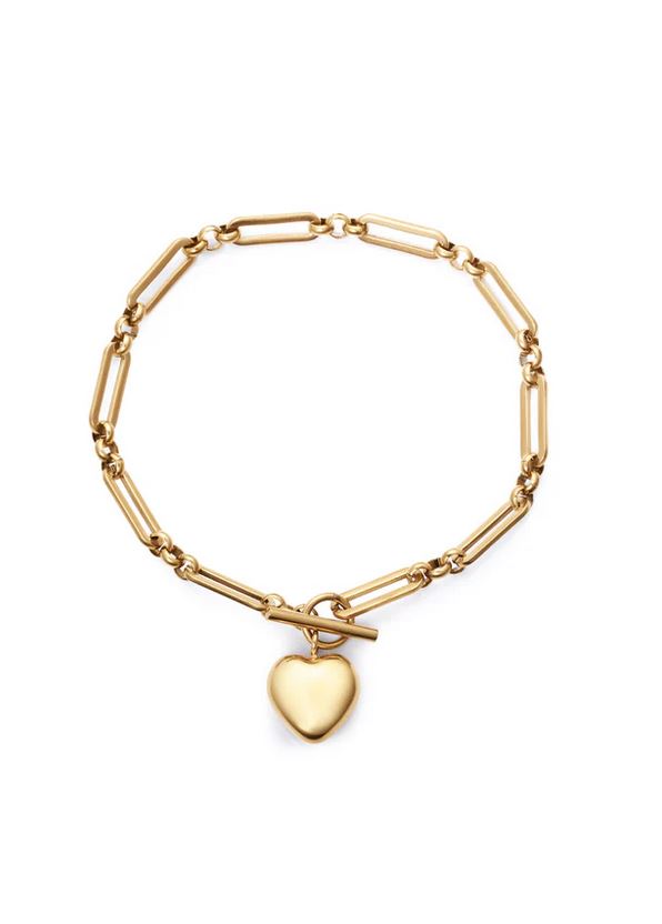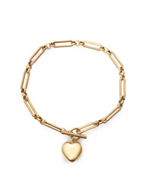 Una pulsera para mujer creada en resistente acero bañado en oro, y adornada con un corazón, un detalle femenino y lleno de encanto. Diseñada para elevar cualquier look de mujer, este complemento brilla por sí solo en todos los momentos en que lo lleves. Con su extensión de 17,5 + 2 cm, es un complemento que atraerá todas las miradas.