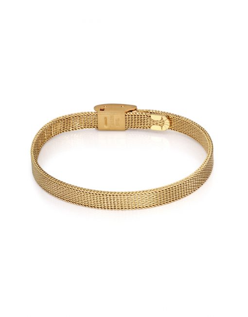Pulsera SWEET de esterilla de acero IP dorado personalizable para niña de 6 mm. De ancho por 17,5 mm. de largo y cierre de presión deslizante que permite su ajuste.