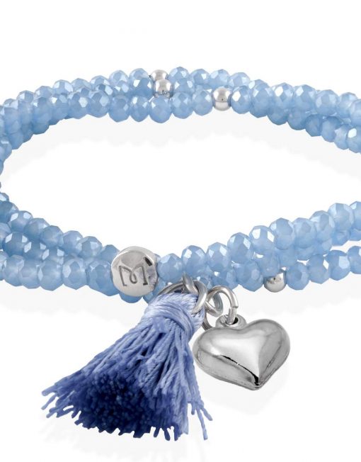 Pulsera de plata de primera ley (925) con baño de rodio, con nucleo de silicona elástica y cristal de strass facetado, con charm corazón. Talla media de 17 cm. (51 cm. total)