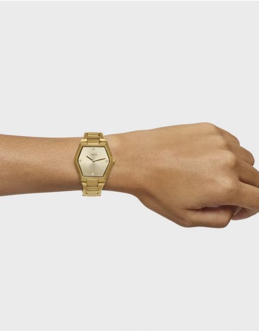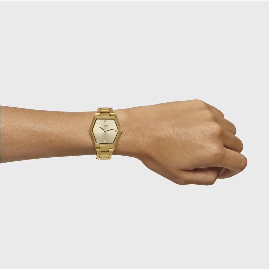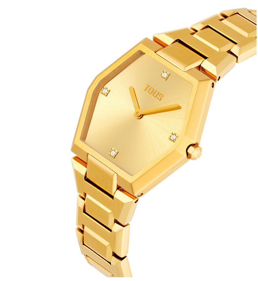 Toda la familia Karat está inspirada en las tallas de las gemas preciosas.; vínculo entre el heritage relojero y la esencia joyera de la marca. El brazalete se encuentran perfectamente integrado a modo de pulsera con eslabones trabajados y facetados ofreciendo un brillo que da carácter a esta colección