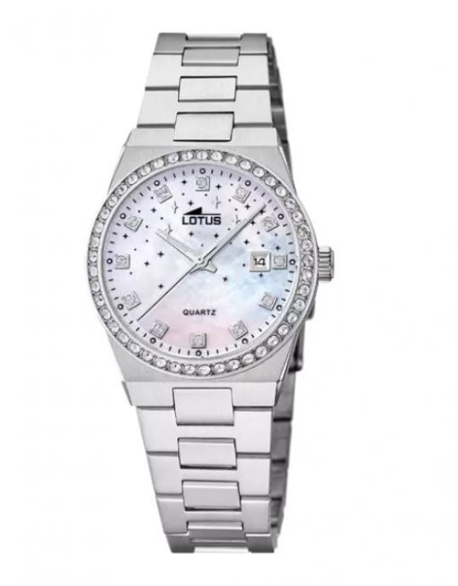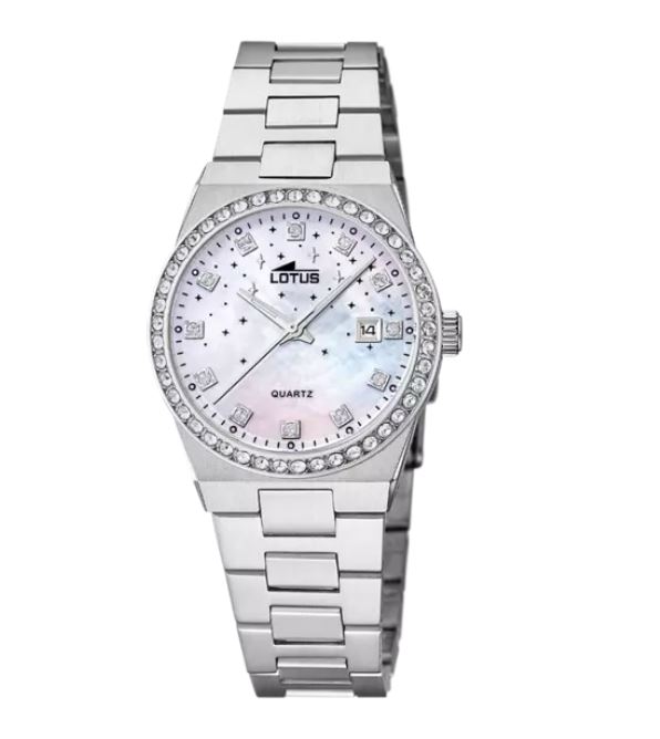 El reloj Lotus 18885/1 para mujer es una pieza única con su caja de acero y circonitas, y cristal mineral. Además, cuenta con una correa de acero inoxidable 316l que lo hace aún más elegante.
