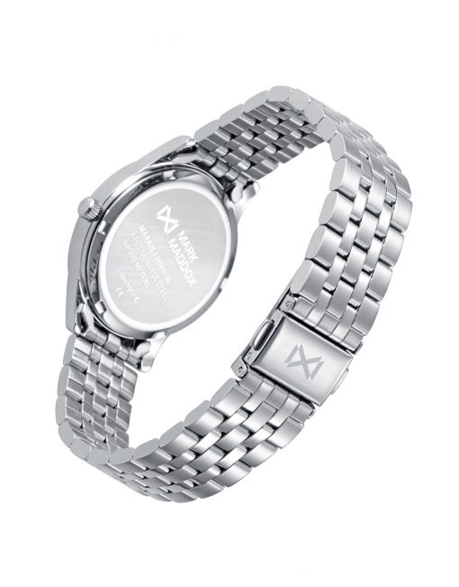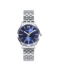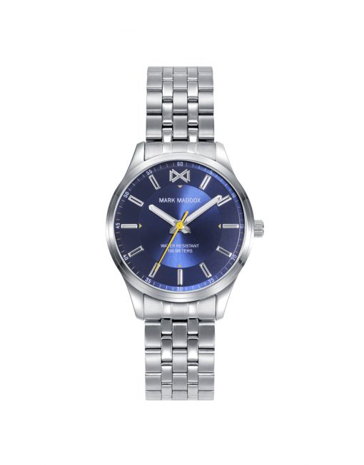 Reloj informal de Mujer Mark Maddox Marais tres agujas, caja y brazalete de acero, esfera azul con indices de acero, aguja de segundo en color amarillo, agujas de horas y minutos en color plata con luminous.