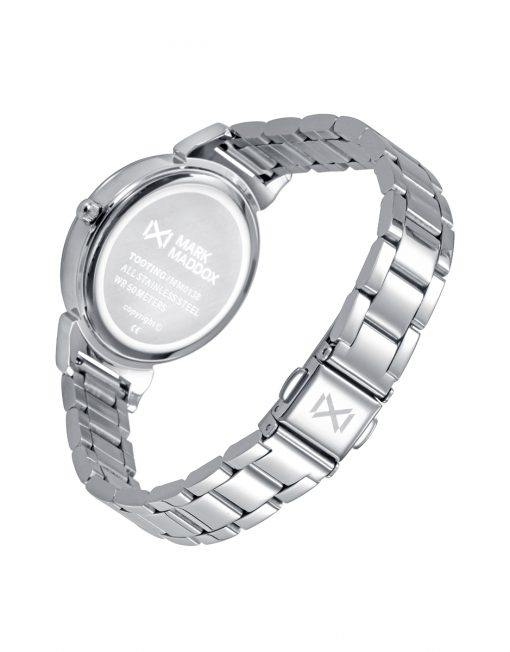 Reloj informal de Mujer Mark Maddox Tooting, tres agujas, cajay brazalete de acero, esfera y agujas en color plata.