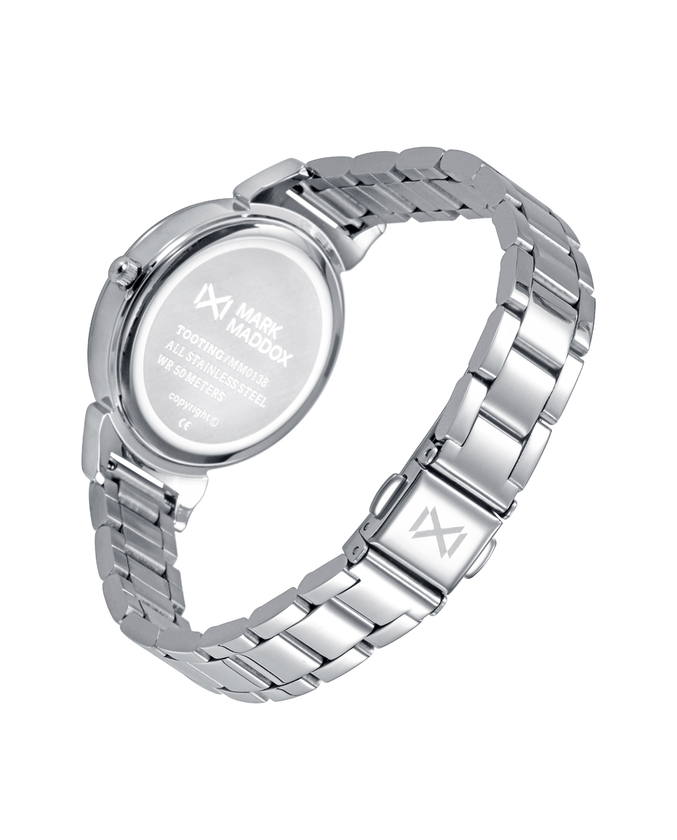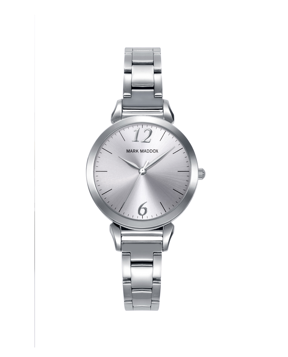 Reloj informal de Mujer Mark Maddox Tooting, tres agujas, cajay brazalete de acero, esfera y agujas en color plata.