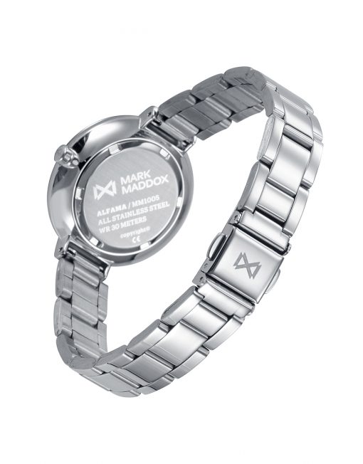 Reloj de mujer Alfama Mark Maddox tres agujas con caja y brazalete en acero, esfera azul.