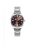 Reloj informal de Mujer Mark Maddox Marais, tres agujas, caja y brazalete de acero, esfera marrón con índices y agujas de hora y minutos en color plata con luminous, aguja de segundos en color naranja .