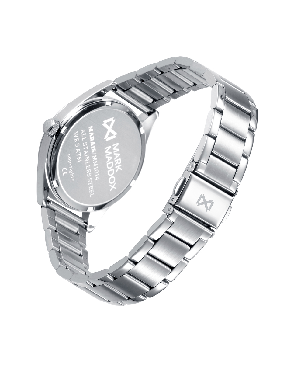 Reloj informal de Mujer Mark Maddox Marais, tres agujas, caja y brazalete de acero, esfera marrón con índices y agujas de hora y minutos en color plata con luminous, aguja de segundos en color naranja .