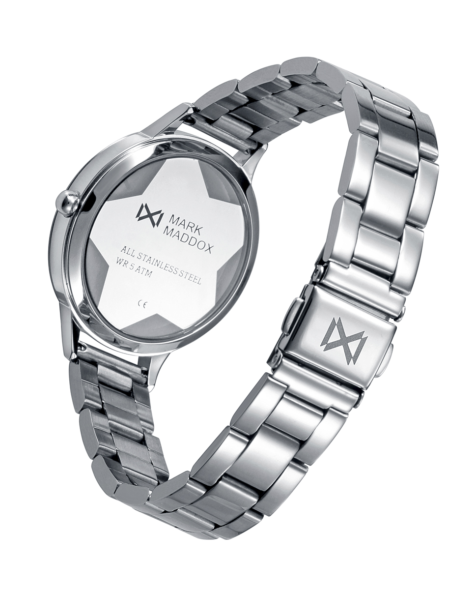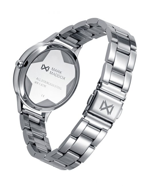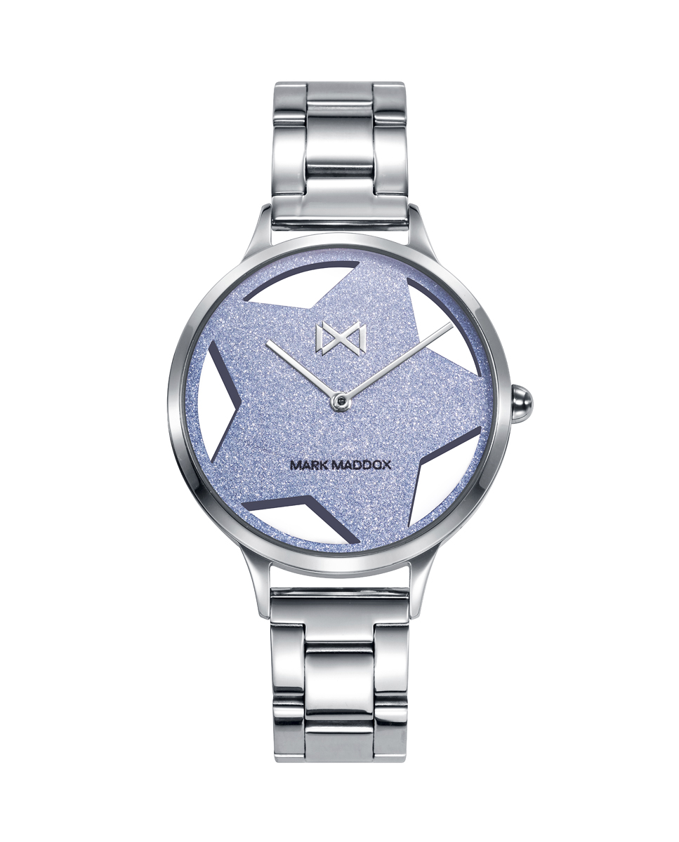 Reloj de Mujer Mark Maddox Tooting, dos agujas , caja y brazalete en acero. Esfera en forma de estrella en color gris brillante
