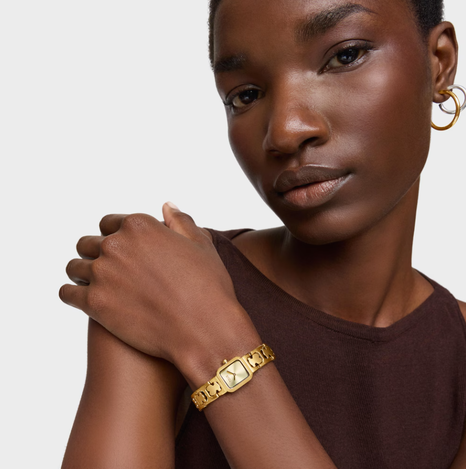 Reloj analógico TOUS Icon Time con brazalete de acero dorado con motivos oso. Dimensiones: 21,7 mm x 16,2 mm. Esfera de metal. Cristal mineral plano octogonal. Funciones: hora y minutos. Impermeable a 3 ATM. Movimiento analógico de cuarzo japonés. Brazalete: 82,8mm x 11,4mm x 11,4mm. Cierre mariposa con pulsadores.
