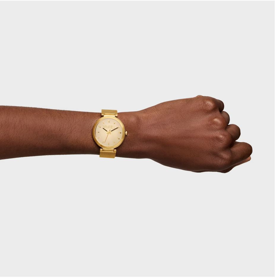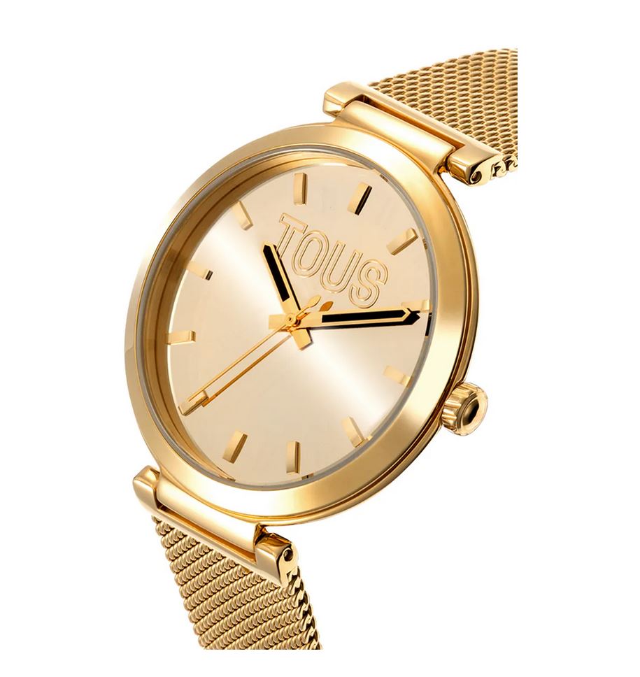 Reloj analógico TOUS S-Mesh Mirror con brazalete y caja de acero dorado. Diámetro caja: 36 mm. Esfera: con efecto espejo en color dorado. Funciones: hora, minutos y segundos. Movimiento: analógico de cuarzo japonés. Impermeable: 5 ATM.