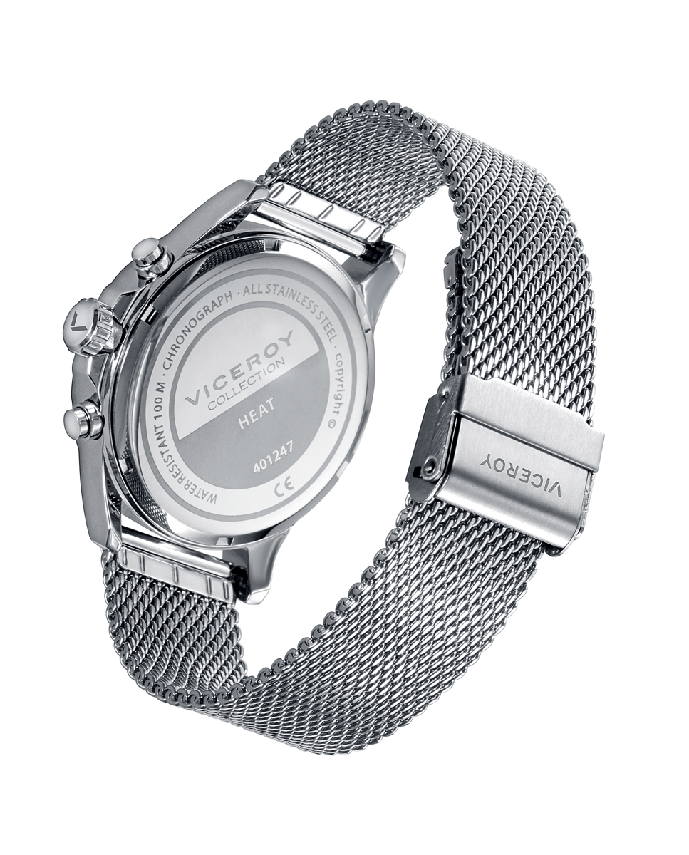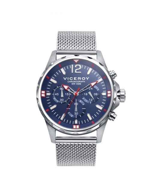 Reloj de Hombre Viceroy Heat, cronógrafo , caja y brazalete en acero, esfera azul con indices y aguja del segundero en color rojo
