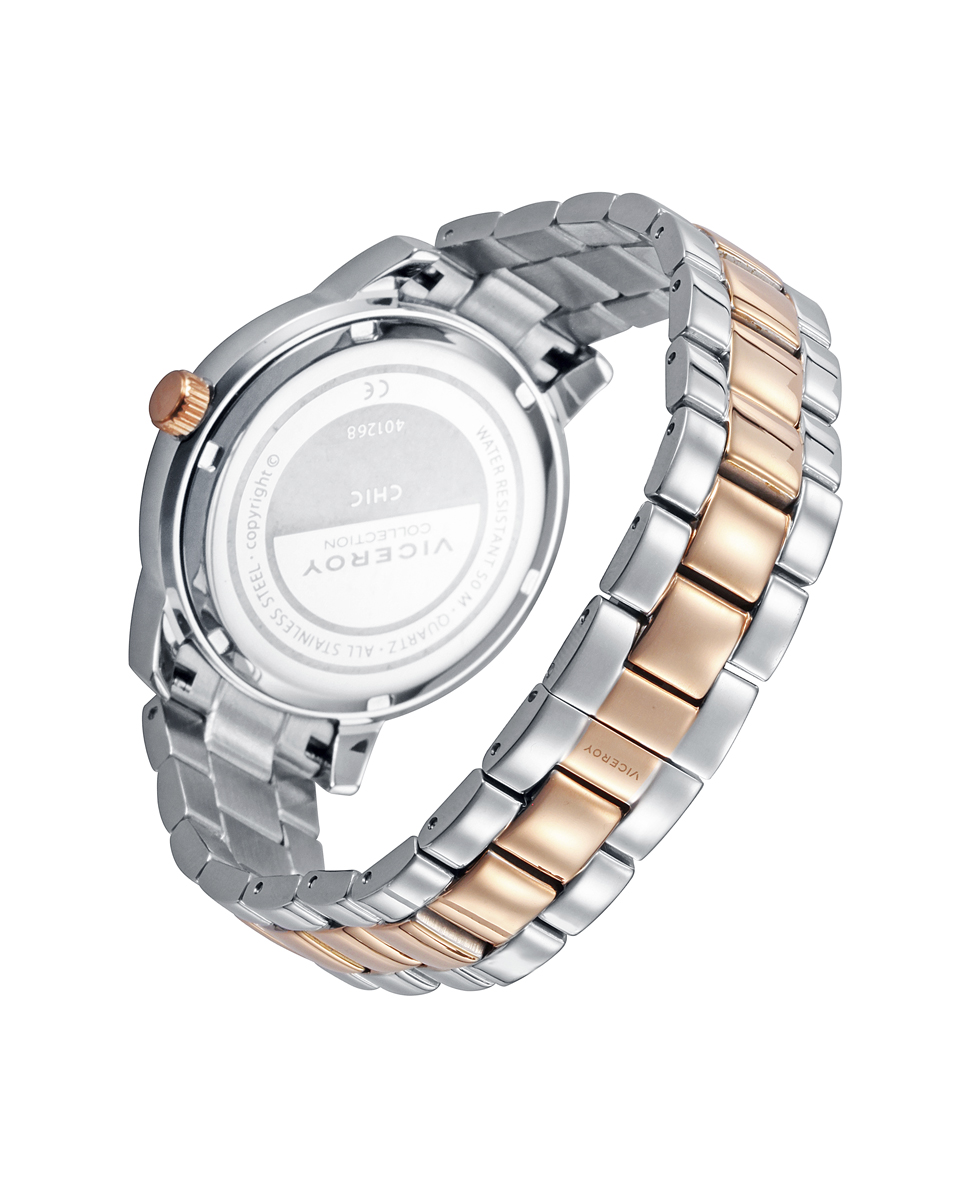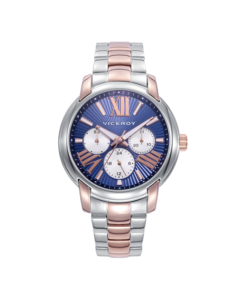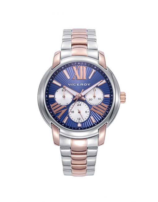 Información del producto Reloj Viceroy de Mujer Chic, colección especial Rocio Osorno, multifunción con caja y brazalete en acero bitono en acero e Ip rosa, esfera azul con indices en color rosa.