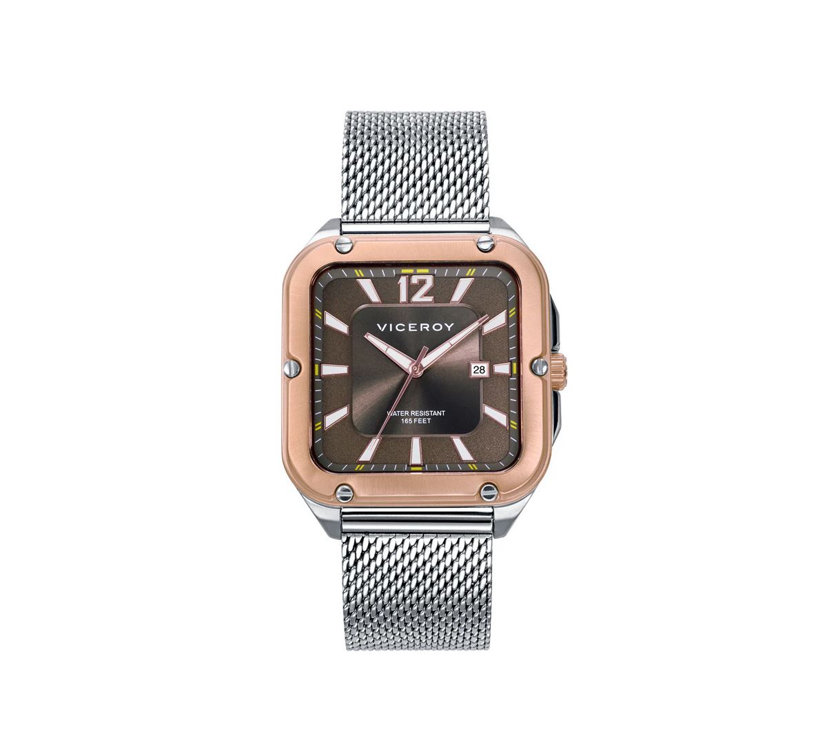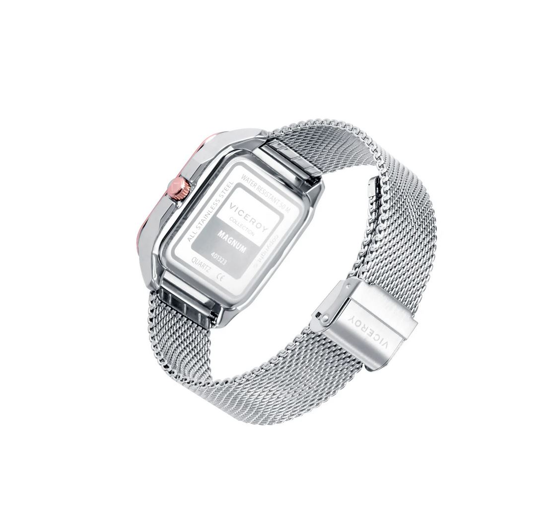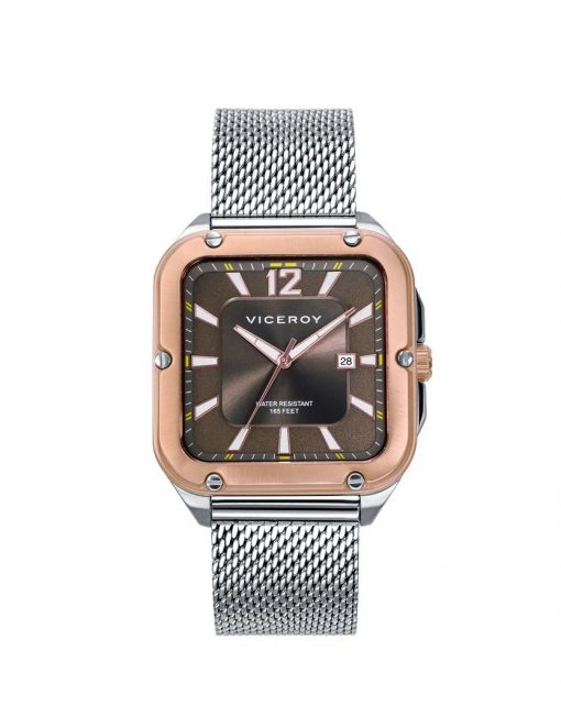 Reloj deportivo para hombre con malla milanesa y caja de acero, bisel rosa, esfera gris y agujas horarias con "luminous". Un modelo sencillo pero sofisticado, para hombres que buscan darle un toque especial a su look del día a día. Viceroy, décadas de pasión y de saber hacer.