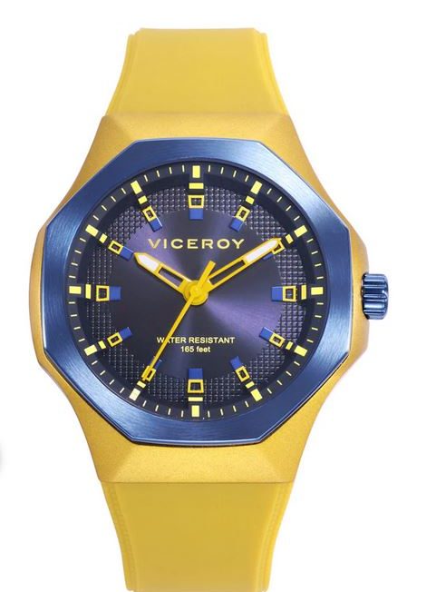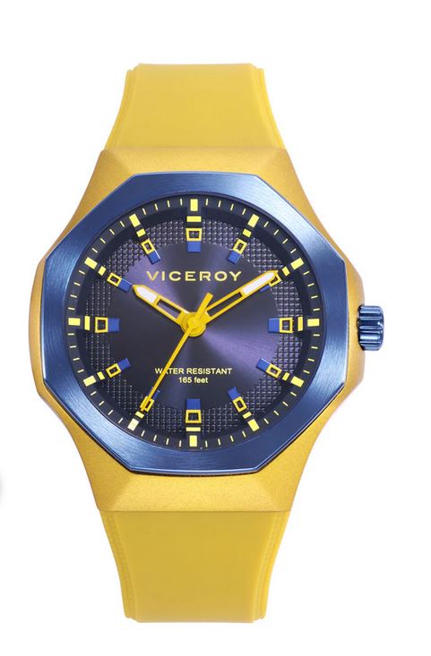 Llamativo reloj de hombre de tres agujas combina estilo y funcionalidad. La caja de aluminio amarillo se complementa con un bisel de acero en color azul, creando un contraste audaz y moderno. Su fondo rosca y la resistencia al agua de 50 metros aseguran total resistencia. La correa de silicona amarilla proporciona confort y vigor. La esfera azul, con índices y agujas horarias en color amarillo, está protegida por un cristal mineral que garantiza su claridad y durabilidad. Un accesorio distintivo y elegante para el hombre moderno.