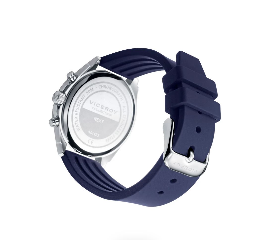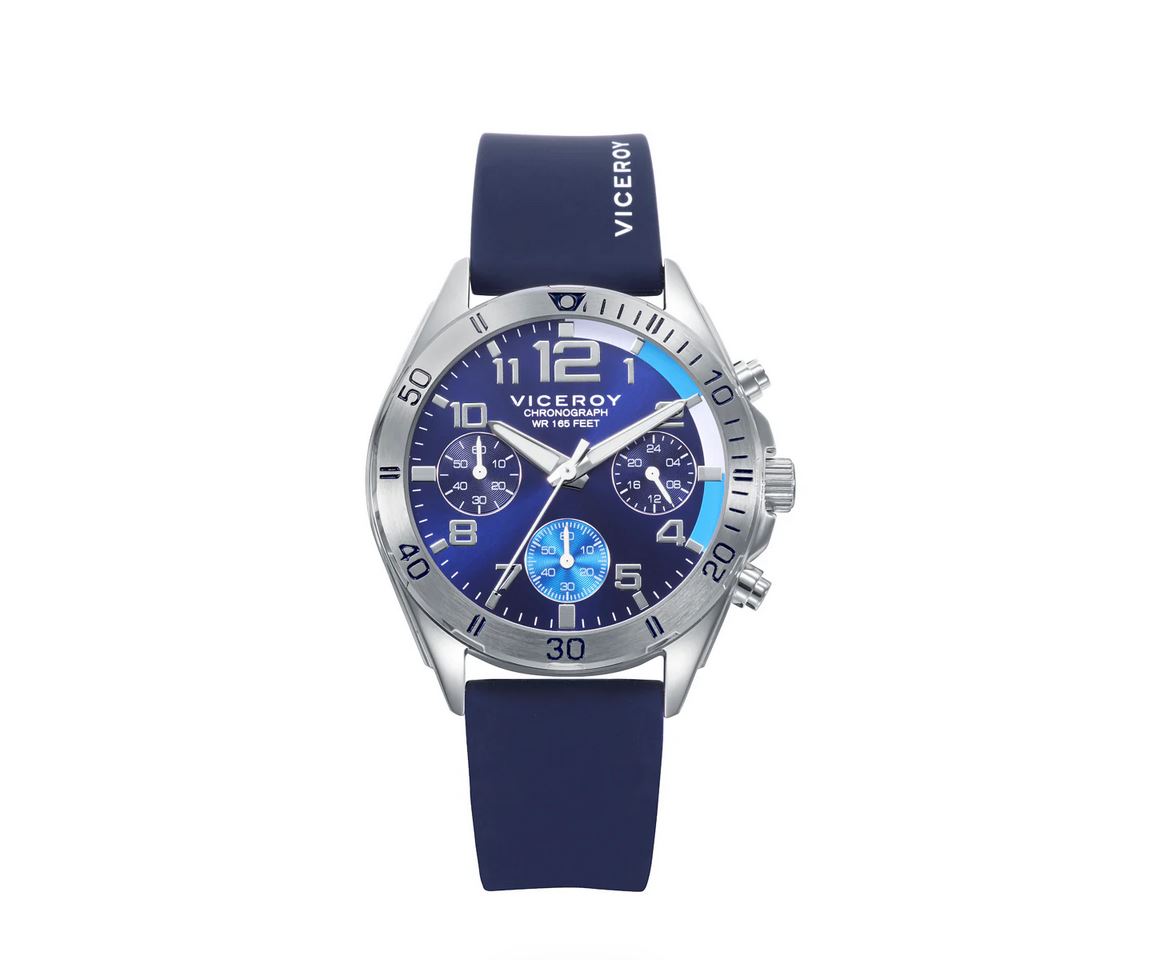 Este reloj de niño con cronógrafo es el regalo ideal para su Primera Comunión, combinando estilo deportivo y elegancia en una pieza especial. Su caja de acero, junto con la cómoda correa de silicona azul, ofrece un diseño robusto y moderno, perfecto para un uso diario lleno de aventuras. Un complemento funcional y lleno de carácter para marcar el tiempo de sus momentos más especiales.