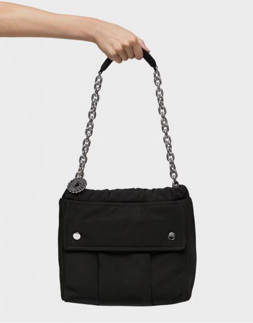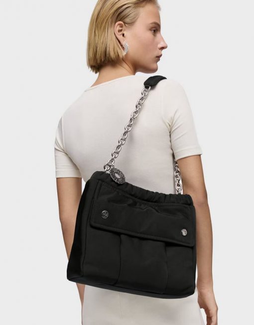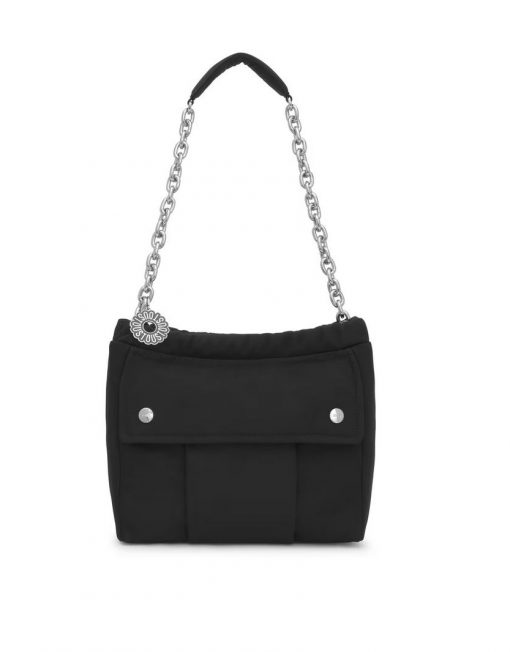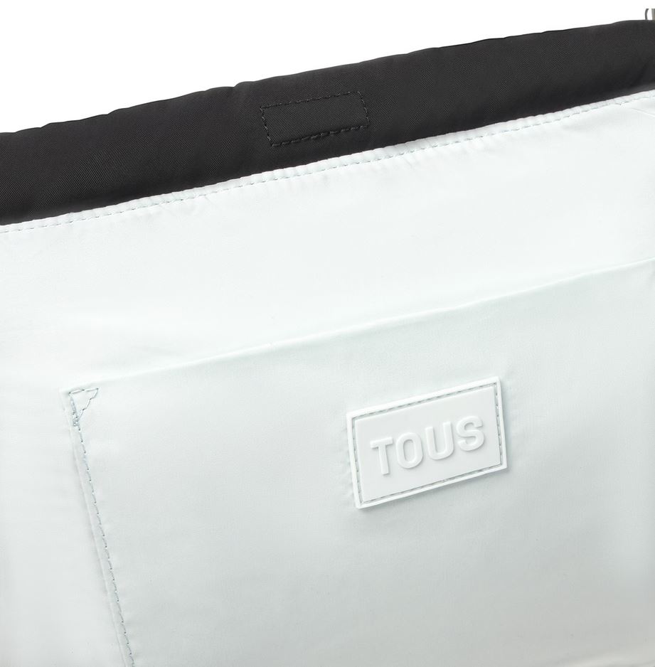 Bolso saca mediano TOUS Jane Soft de nilón reciclado con detalles de piel sintética en color negro. Cierre magnético. Bolsillo interior abierto y bolsillo exterior con cierre de botones. Asas fijas de hombro. Medidas (alto x ancho x fondo): 28 x 33 x 14 cm.
