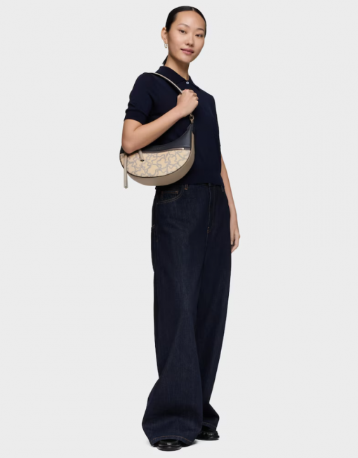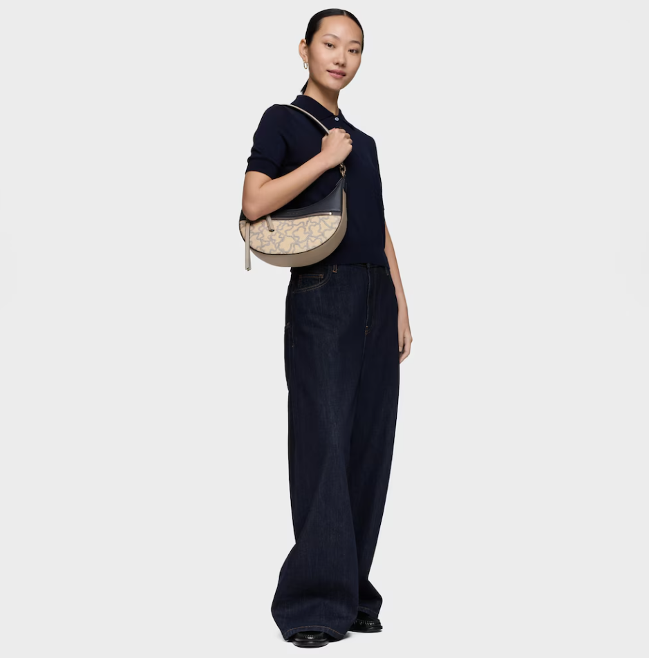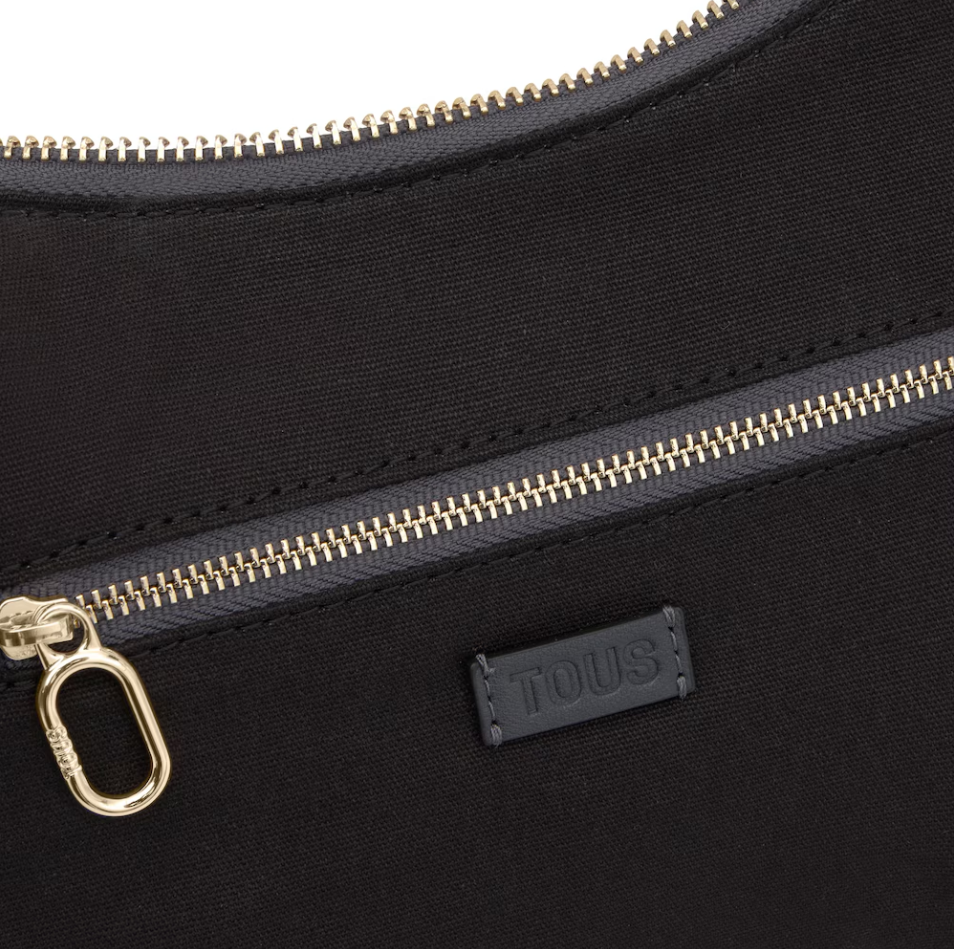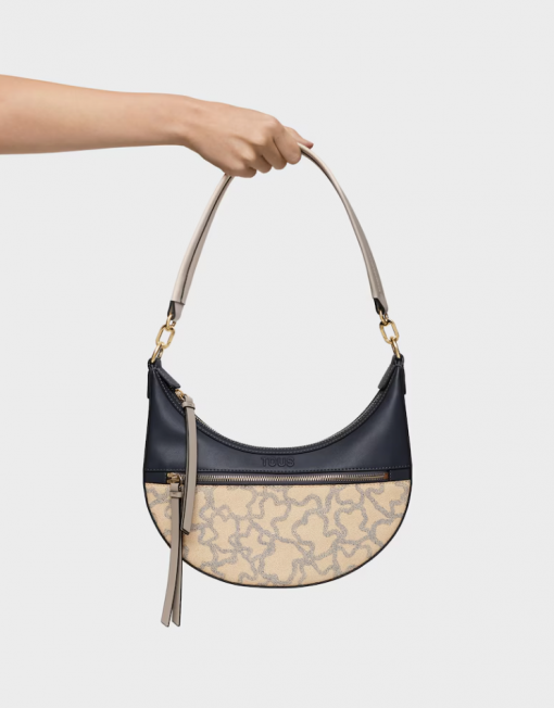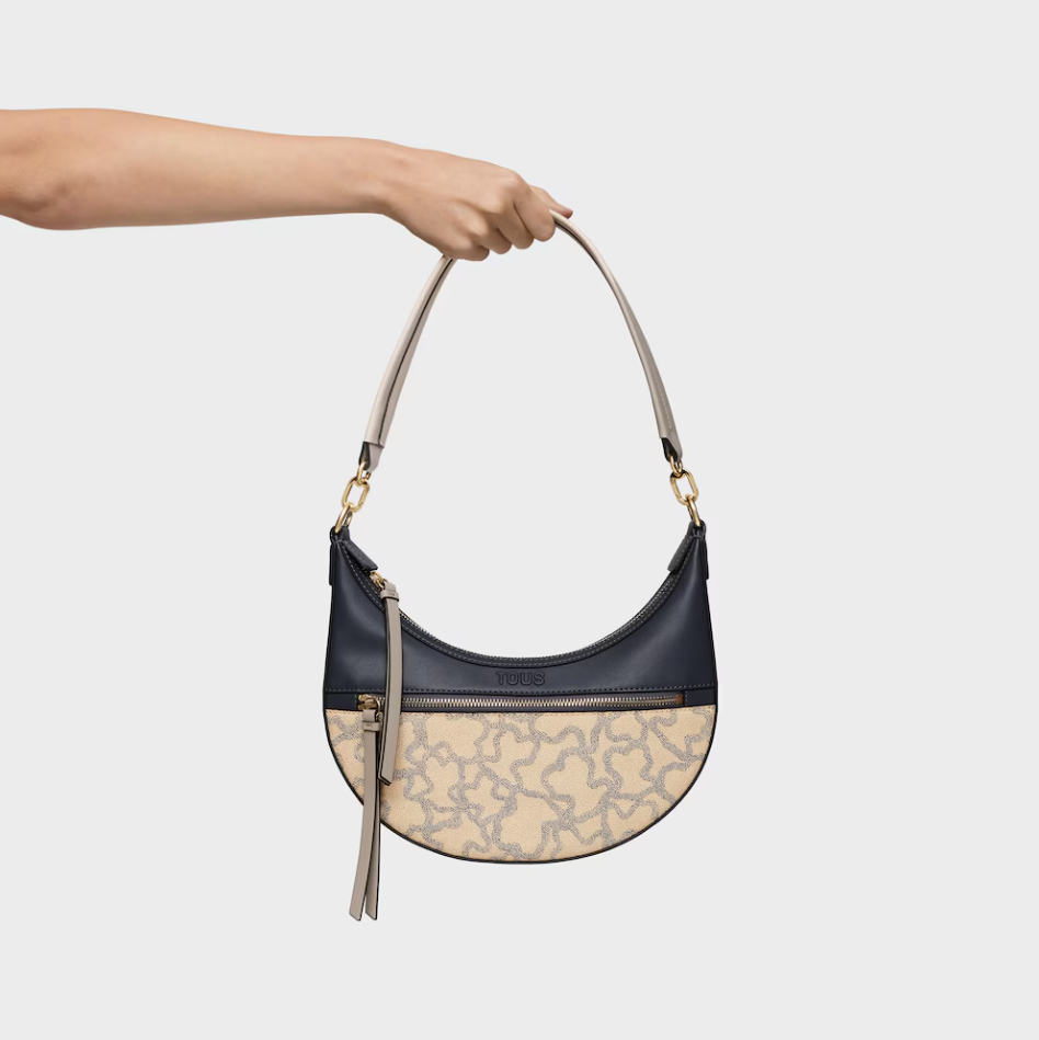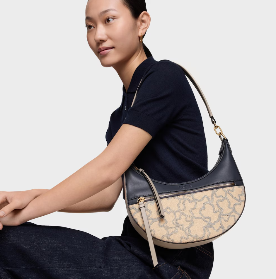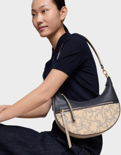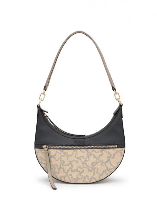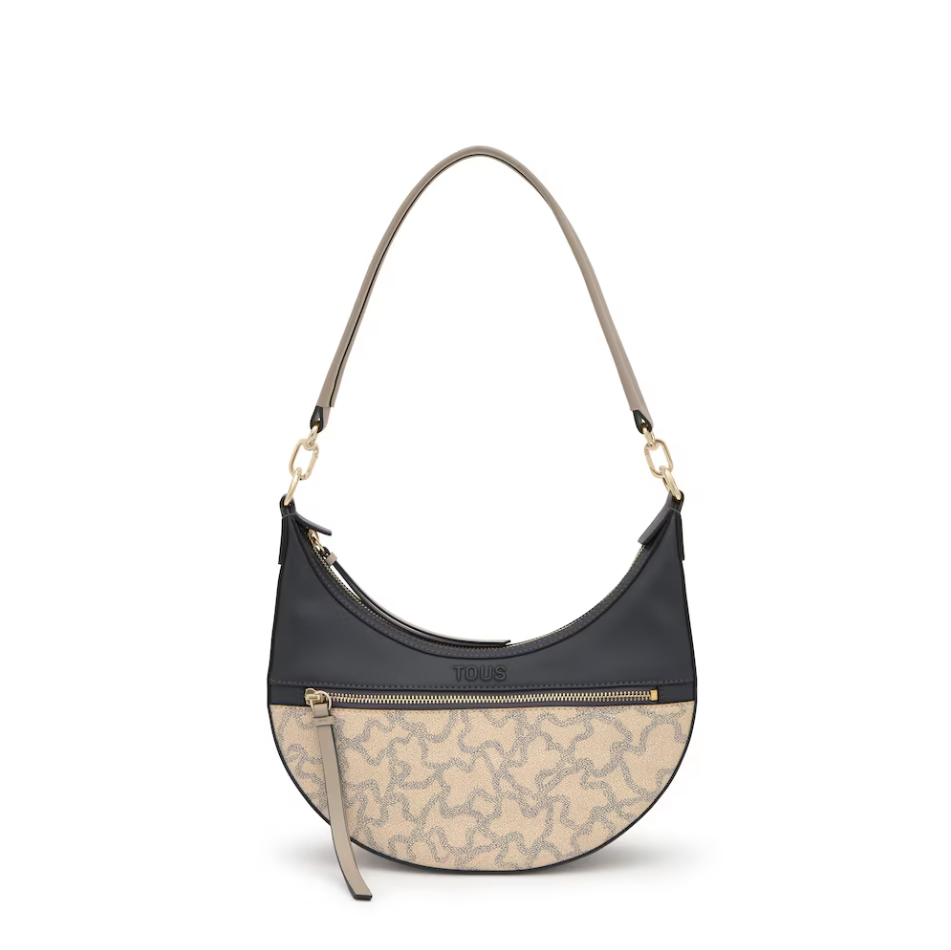 Bolso de hombro bandolera TOUS Kaos Icon de poliuretano en color topo. Cierre de cremallera. Bolsillo interior y exterior con cremallera. Asa de hombro fija. Medidas (alto x ancho x fondo): 26 x 29 x 8 cm.