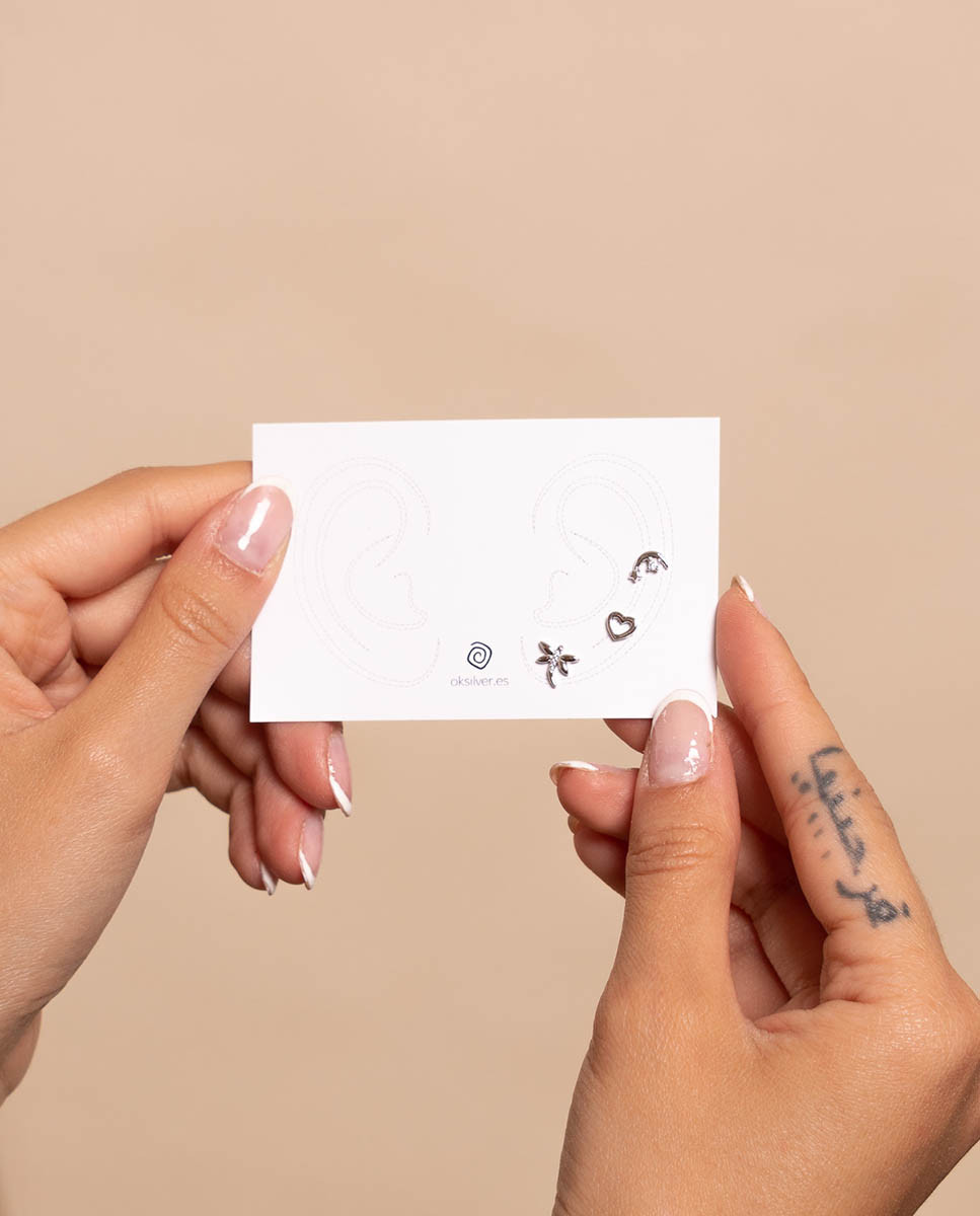 SET DE 3 PENDIENTES OK SILVER PLATA CON BAÑO DE RODIO 42-9000