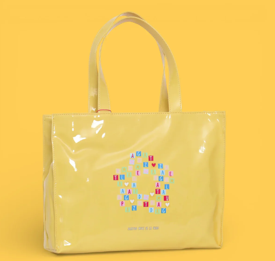 Bolsa shopper versátil con el icónico logo amarillo de Agatha Ruiz de la Prada. Diseño clásico y funcional que combina estilo con practicidad. Perfecta para el día a día, esta bolsa de mano ofrece espacio suficiente para tus esenciales. Un accesorio imprescindible que refleja la elegancia y personalidad de la marca.