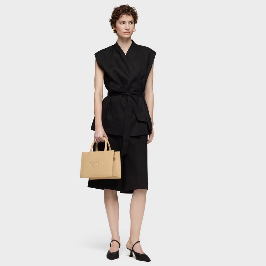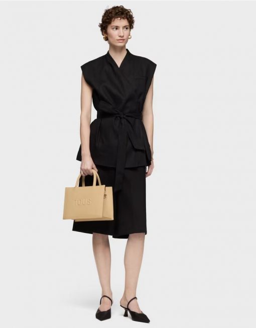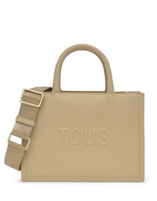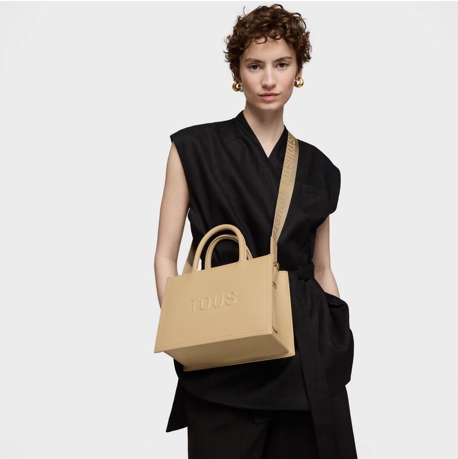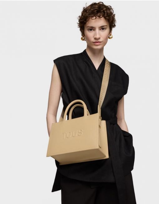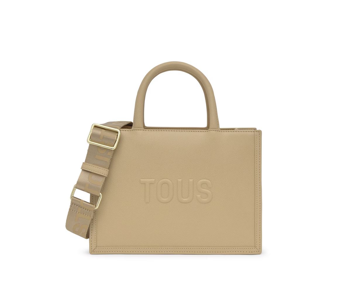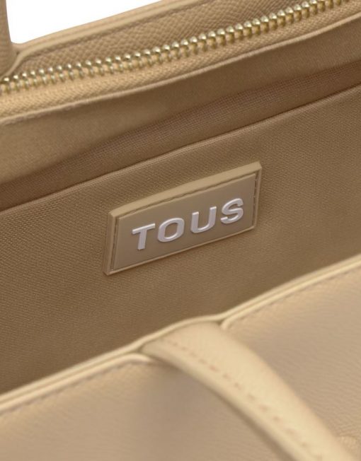 Bolso shopper mediano Amaya TOUS Brenda de poliuretano en color arena. Cierre de cremallera. Bolsillo interior con cierre de cremallera. Asas fijas de hombro y asa bandolera ajustable y desmontable. Medidas (alto x ancho x fondo): 18,5 x 26 x 12 cm.