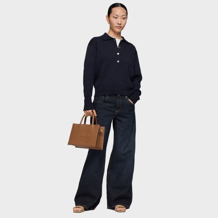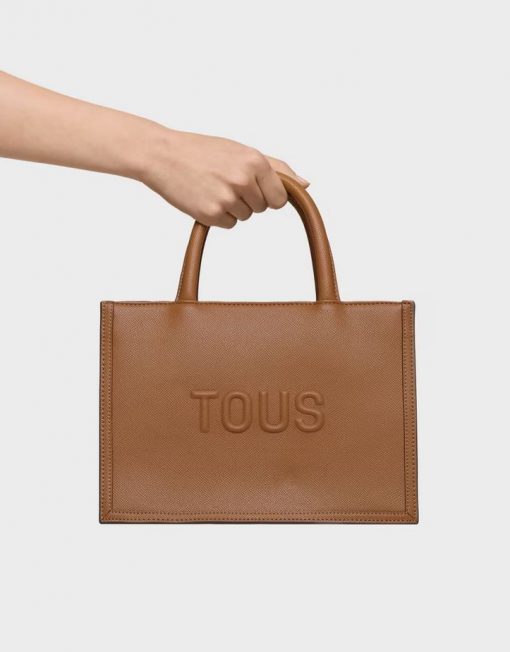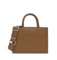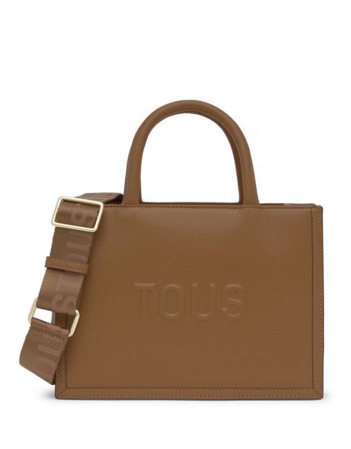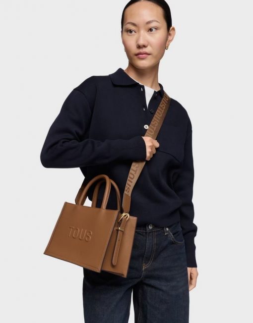 Bolso shopper mediano Amaya TOUS Brenda de poliuretano en color camel. Cierre de cremallera. Bolsillo interior con cierre de cremallera. Asas fijas de hombro y asa bandolera ajustable y desmontable. Medidas (alto x ancho x fondo): 18,5 x 26 x 12 cm.