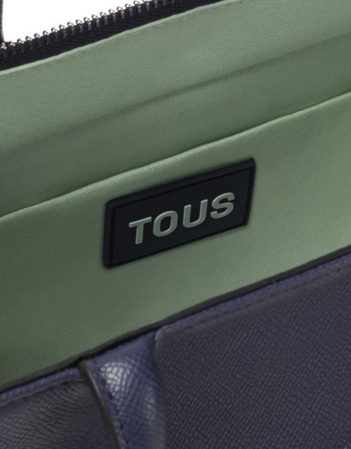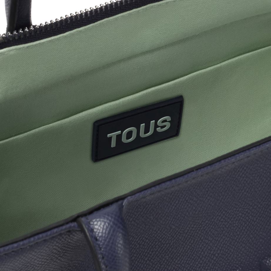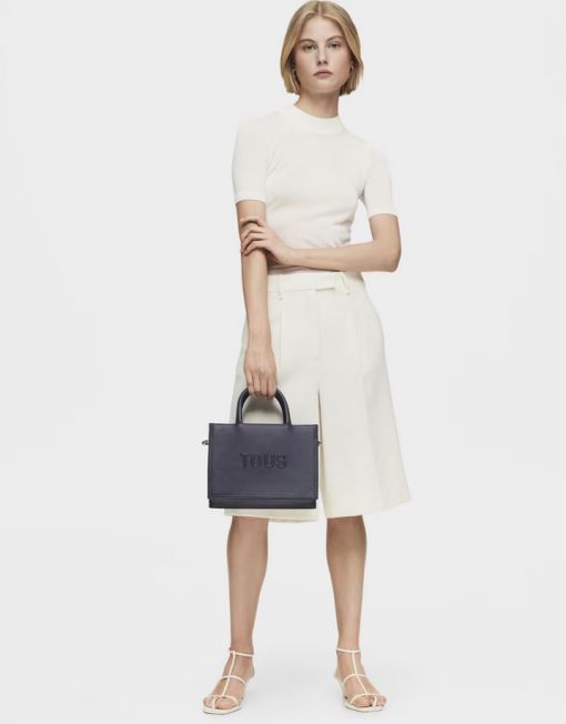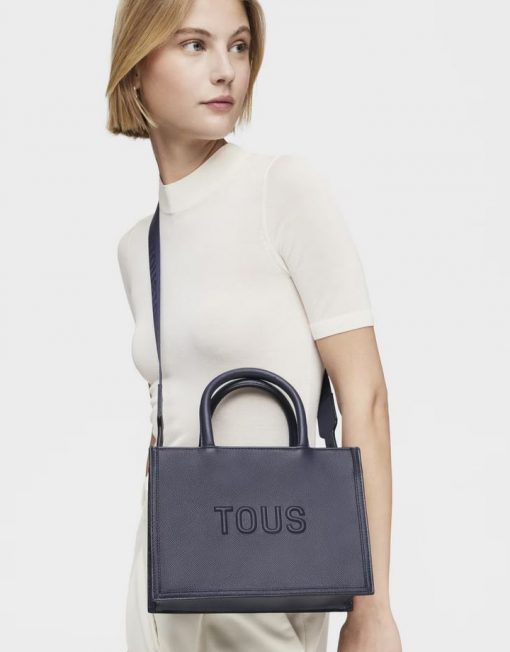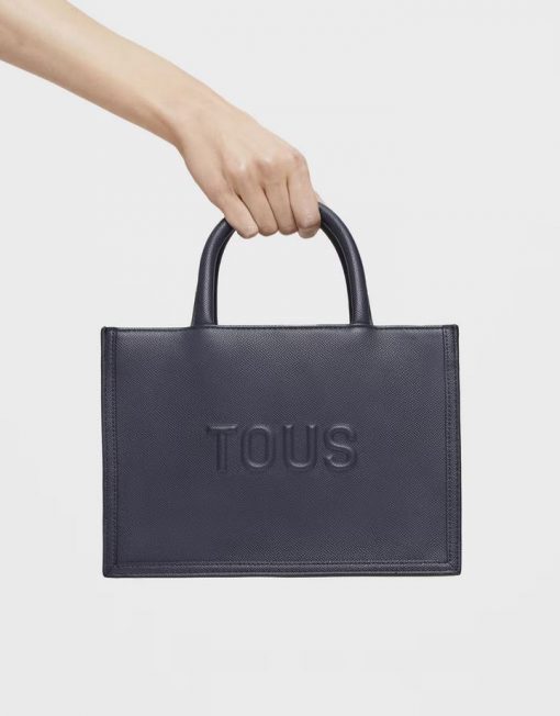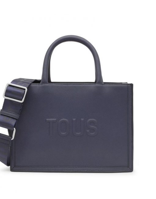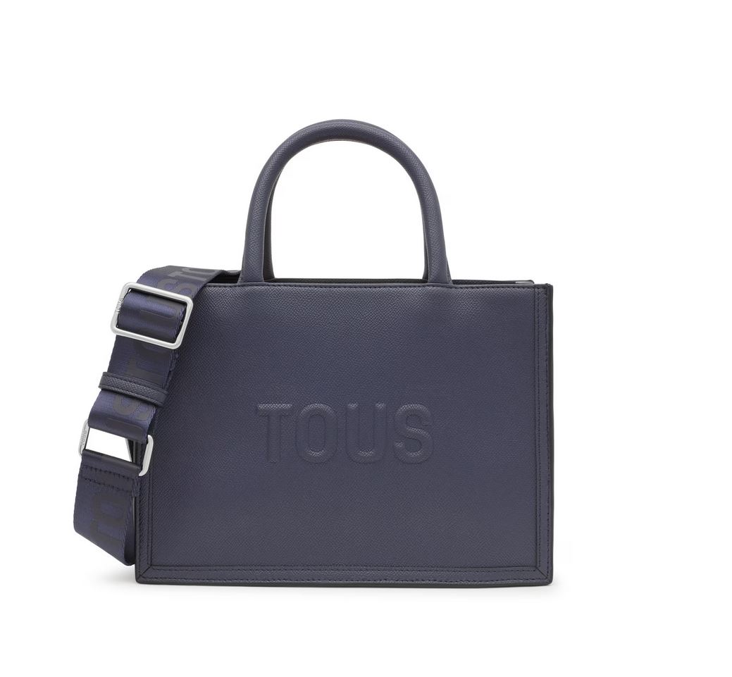 Bolso shopper mediano Amaya TOUS Brenda de poliuretano en color azul marino. Cierre de cremallera. Bolsillo interior con cierre de cremallera. Asas fijas de hombro y asa bandolera ajustable y desmontable. Medidas (alto x ancho x fondo): 18,5 x 26 x 12 cm.