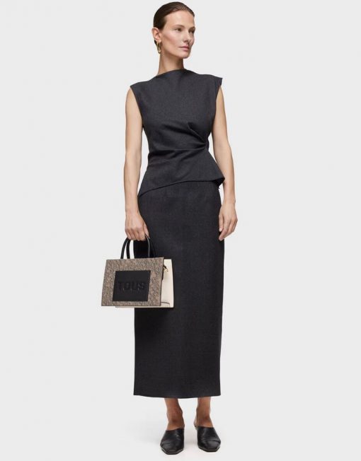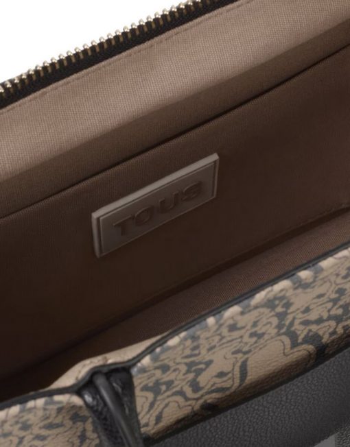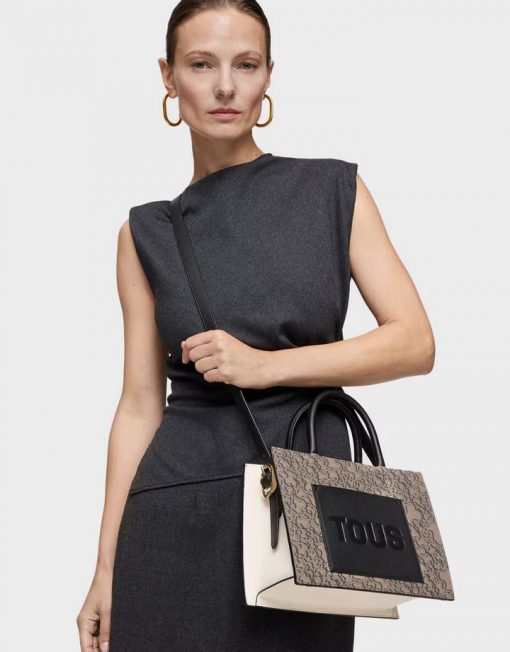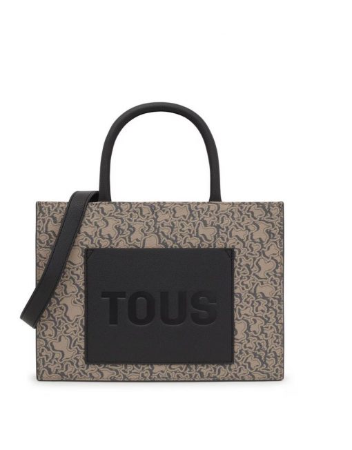 Bolso shopper mediano Kaos Mini Evolution New de lona con detalles de piel sintética en color topo. Cierre de cremallera. Bolsillo interior abierto. Asas fijas de hombro y asa bandolera ajustable y extraíble. Medidas (alto x ancho x fondo): 18,6 x 25,5 x 12 cm.