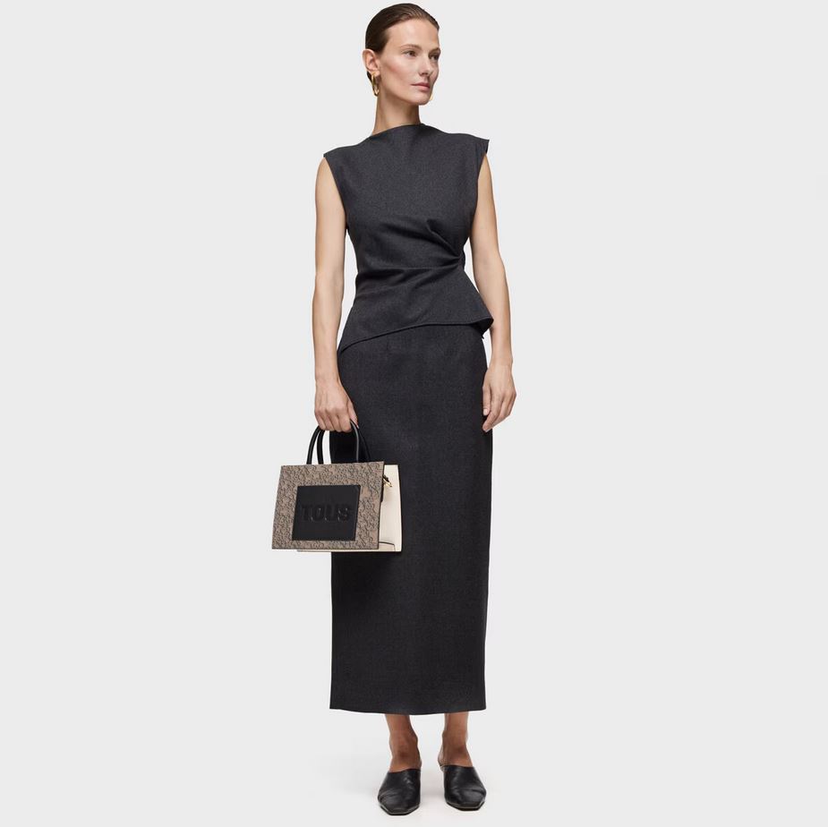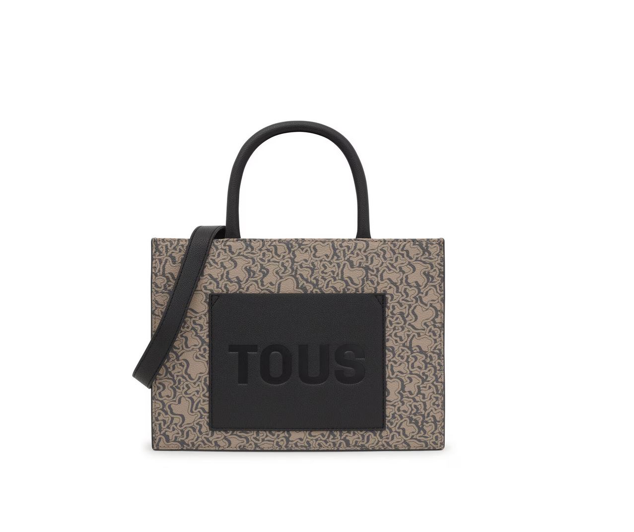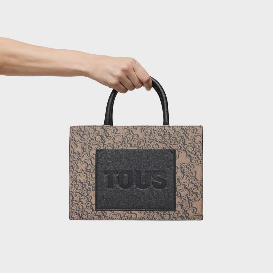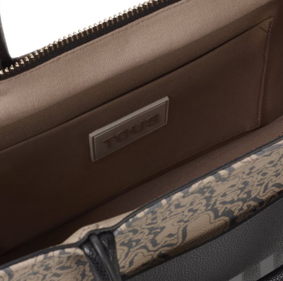 Bolso shopper mediano Kaos Mini Evolution New de lona con detalles de piel sintética en color topo. Cierre de cremallera. Bolsillo interior abierto. Asas fijas de hombro y asa bandolera ajustable y extraíble. Medidas (alto x ancho x fondo): 18,6 x 25,5 x 12 cm.
