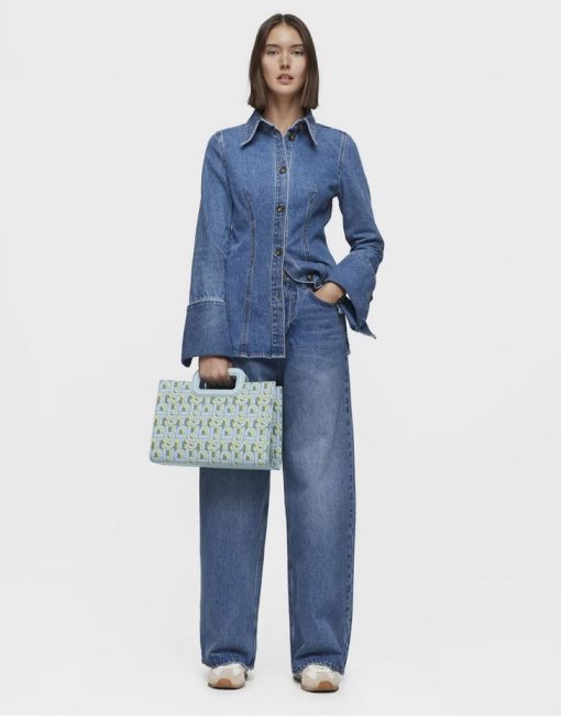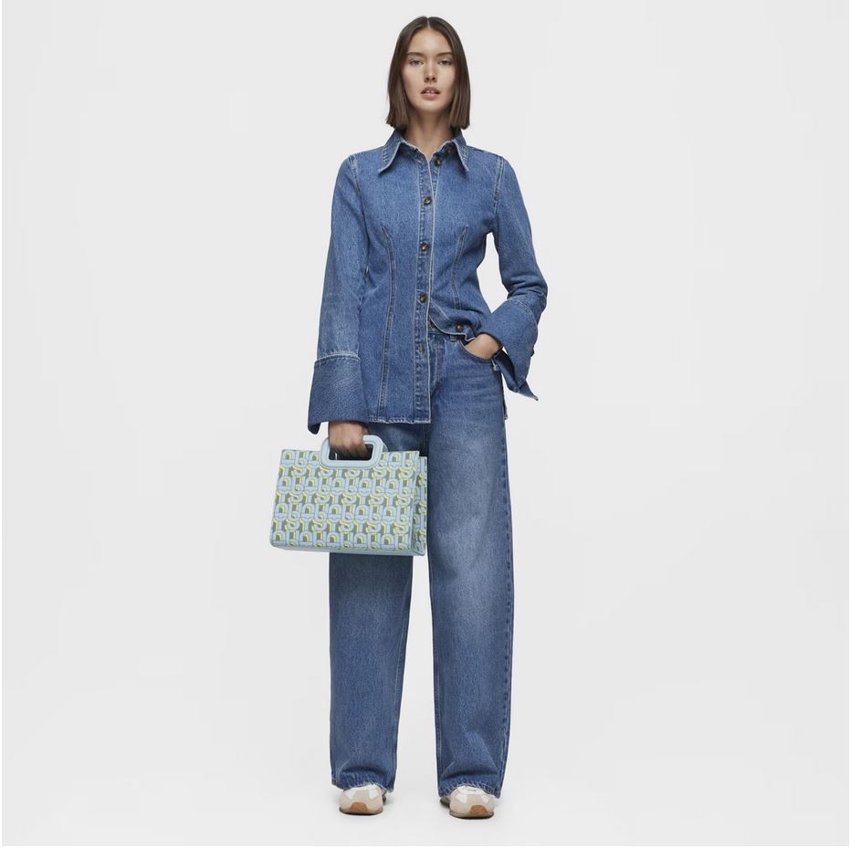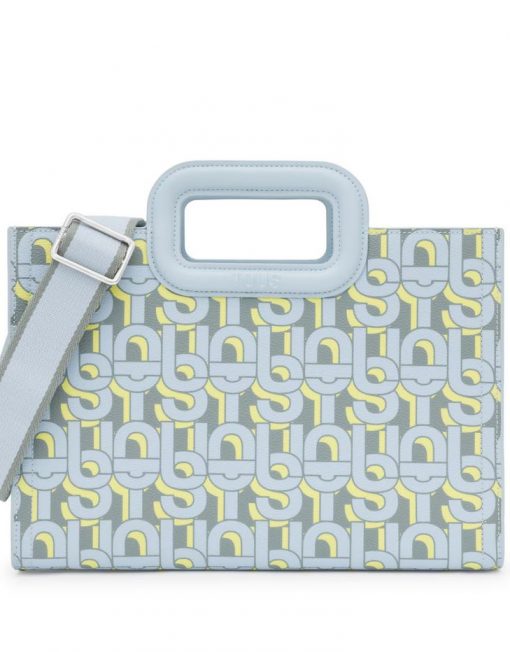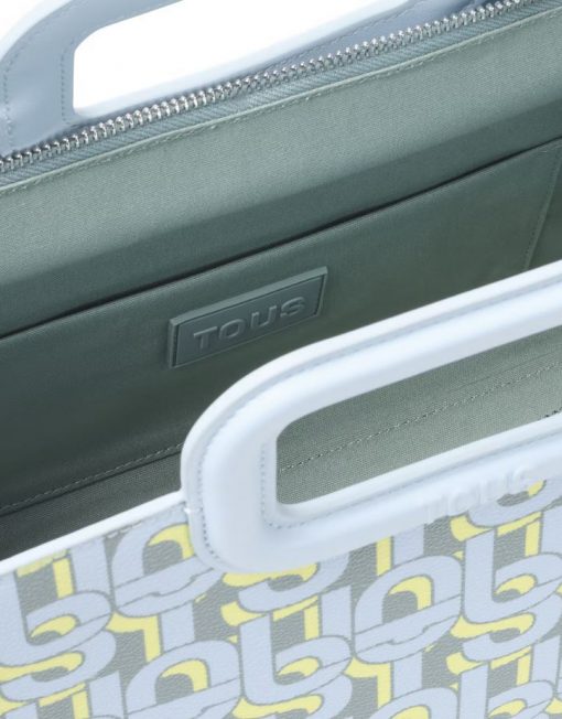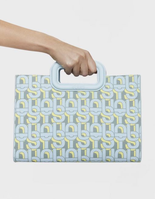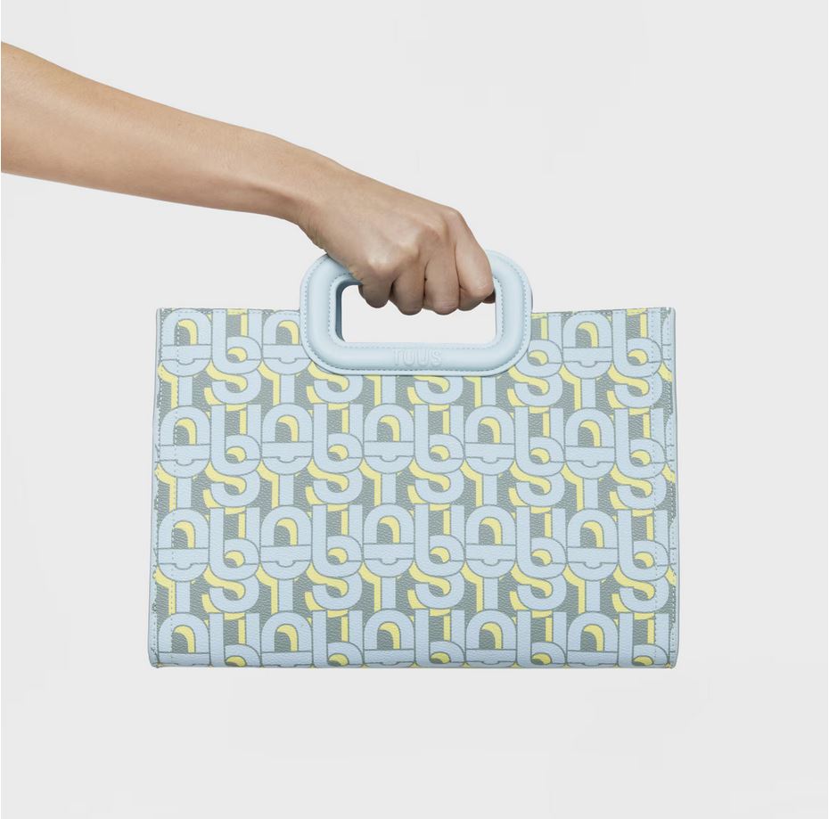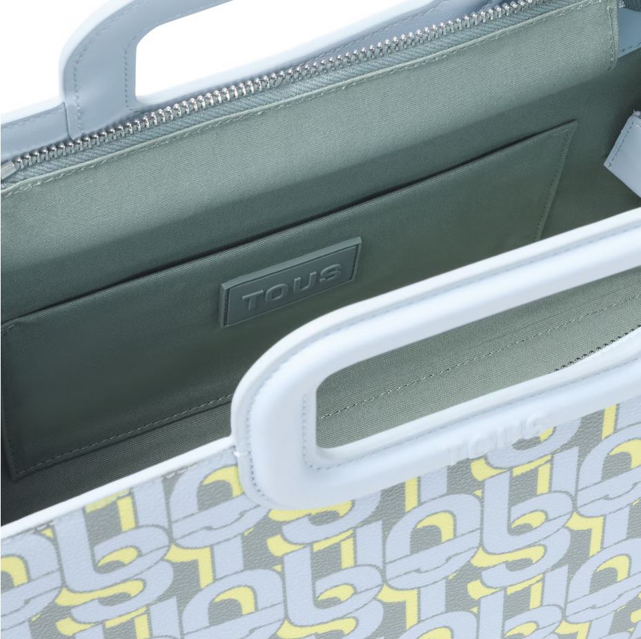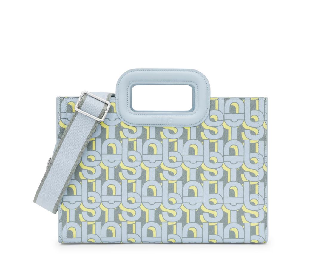 Bolso shopper mediano Amaya TOUS MANIFESTO de lona con detalles en piel sintética y estampado en color azul claro. Cierre de cremallera. Bolsillo interior abierto. Asas fijas de mano y asa bandolera ajustable y extraíble. Medidas (alto x ancho x fondo): 21 x 31 x 10 cm.