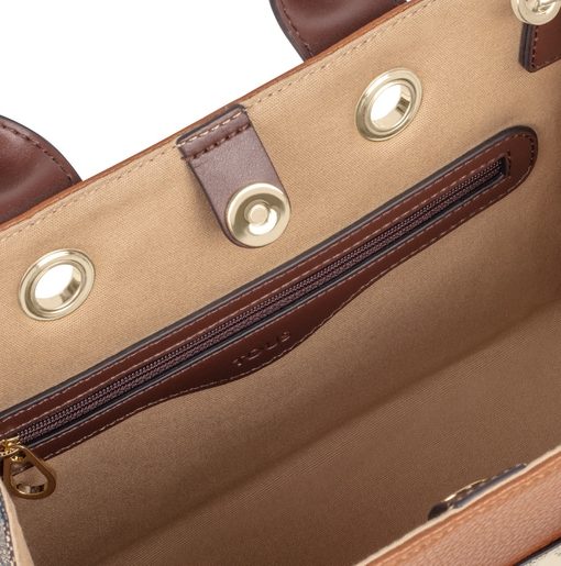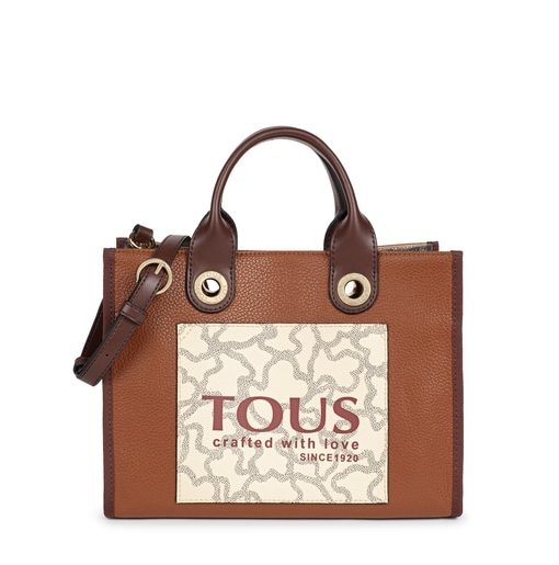 Bolso shopping mediano TOUS de la colección Amaya Kaos Icon de vinilo efecto piel en color multi marrón con estampado de osos. Cierre con botón magnético. Asas de mano y correa de bandolera ajustable y desmontable. Bolsillo exterior plano y dos bolsillos interiores con cremallera. Medidas: 15 x 21,5 x 27,5 cm.