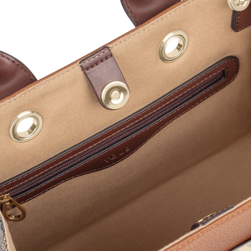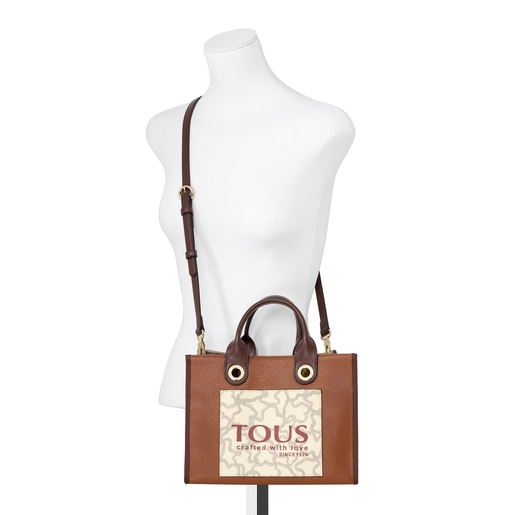 Bolso shopping mediano TOUS de la colección Amaya Kaos Icon de vinilo efecto piel en color multi marrón con estampado de osos. Cierre con botón magnético. Asas de mano y correa de bandolera ajustable y desmontable. Bolsillo exterior plano y dos bolsillos interiores con cremallera. Medidas: 15 x 21,5 x 27,5 cm.