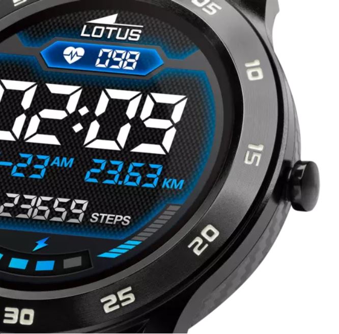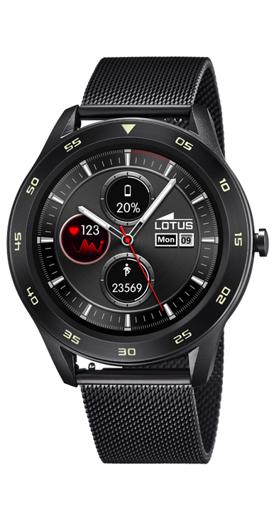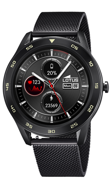 El reloj inteligente Lotus 50010/Un reloj para hombres es una pieza de alta calidad y elegante, diseñada para conocer los gustos más exigentes del público contemporáneo y urbano. Su estuche de aleación de zinc en forma redondeada con un diámetro de 47.95 mm, combinada con una correa de acero inoxidable negro 316l con una anchura de 22.0 mm, hacen de este reloj inteligente una pieza sofisticada y duradera.