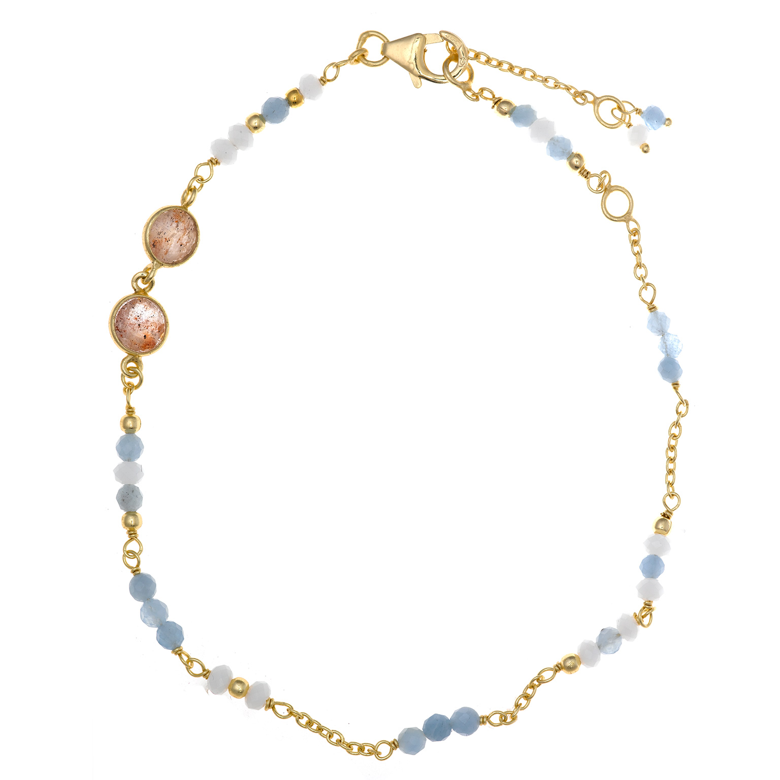 TOBILLERA SALVATORE 163TB003 CHAPADO DORADO CHATON CUARZO FRESA BOLITAS AGATA