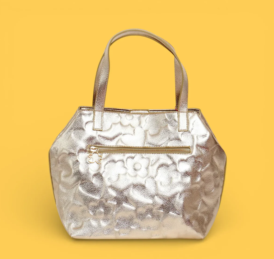 Bolso tote de diseño elegante con iconos grabados en acabado platino. Perfecto para el día a día, combina funcionalidad y estilo con su capacidad espaciosa y asas cómodas. Los detalles grabados le dan un toque sofisticado y diferenciador. Ideal para quien busca un accesorio versátil que complementa cualquier look con personalidad.