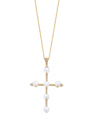 COLGANTE DURAN EXQUSE PEARL CRUZ DE PERLAS Y CIRCONITAS DORADO 50+5CM 00510277