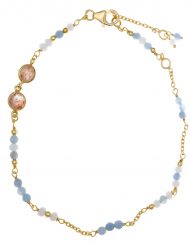 TOBILLERA SALVATORE 163TB003 CHAPADO DORADO CHATON CUARZO FRESA BOLITAS AGATA