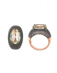ANILLO SALVATORE 252S0037/16 PLATA CHAPADO ROSA CRISTAL VERDE MANZANA OVALO CIRCONITAS BLANCAS